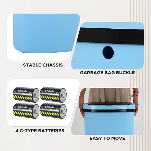 - Power Saving: Equipped with a motion sensor, the trash can operates efficiently with just 4 C-TYPE batteries, allowing for long-term usage without frequent replacements. It's designed to save energy, making it convenient for everyday use.