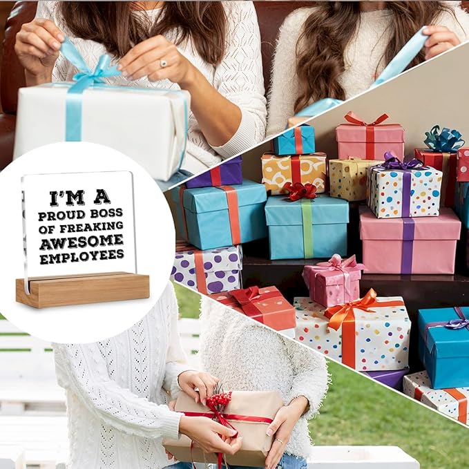 Funny Boss Day Gifts for Women Men, Bosses Gifts, Birthday Gift for Bosses Male Female, I'm A Proud Boss Office Decorative Signs Plaque for Desk