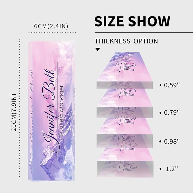 - 【High-Quality Acrylic Material】Our factory uses high-quality solid acrylic blocks to make name plates, and uses the latest high-definition UV printing machine to ensure that the content on the acrylic name plate is clear and not easily faded. So it will stand out on any desk, fully reflecting your professional ethics.