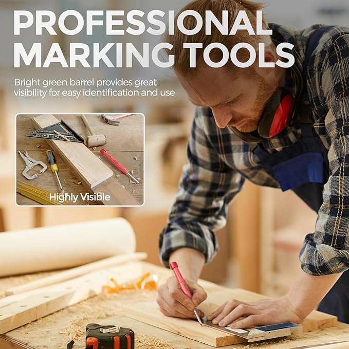 - Ergonomic Design: Our carpenter markers designed with ergonomic and non-slip grips, providing a maximum comfortable user experience.Non-slip surfaces ensure a firm hold, improving control and precision.In addition, includes a practical pocket clip, making it easy to carry and access on the job site