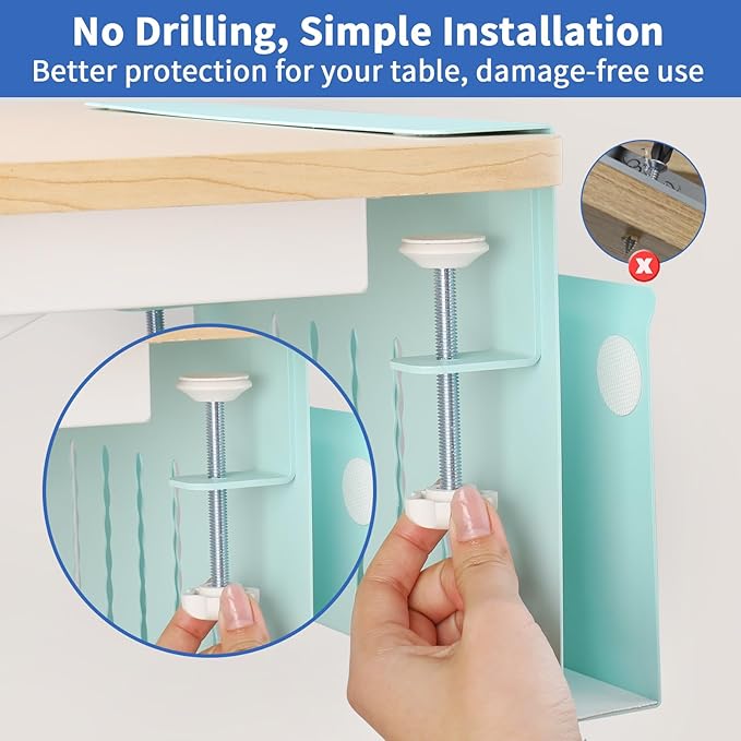 - No Drilling & Easy To Install: Our no drill desk side storage, laptop holder under desk is easy to install. And the silicone cushion can prevents scratches on desks and other objects, the rounded corners design can also avoid scratches. No extra tools are needed and importantly it won't damage your desk. (Note: Before purchasing, please confirm whether the upper and lower edges of the sides of your desk are flat and whether the size is suitable for your desk. You can refer to our pictures to confirm whether our side of desk storage is suitable for your desk.)