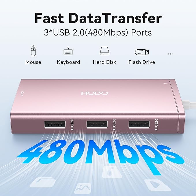 - USB C Hub Multiport Adapter: This USB C Dock with 3 usb 2.0 ports, allows your conveniently connect keyboard,mouse, usb flash driver, usb c hard disks, transfer speeds up to 480Mbps, USB 2.0 allows you to connect keyboard or mouse without any lag