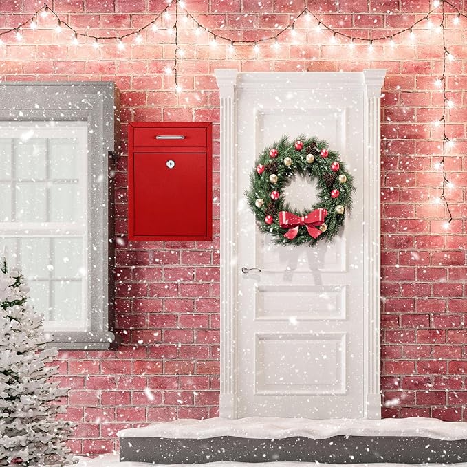 Locking Mailbox with Key for Outdoor 12.2 x 8.5 x 3 Inches Large Wall Mount Mail Box with Lock Security Mail Drop Metal Collection Boxes Hanging Secure Postbox(Red)