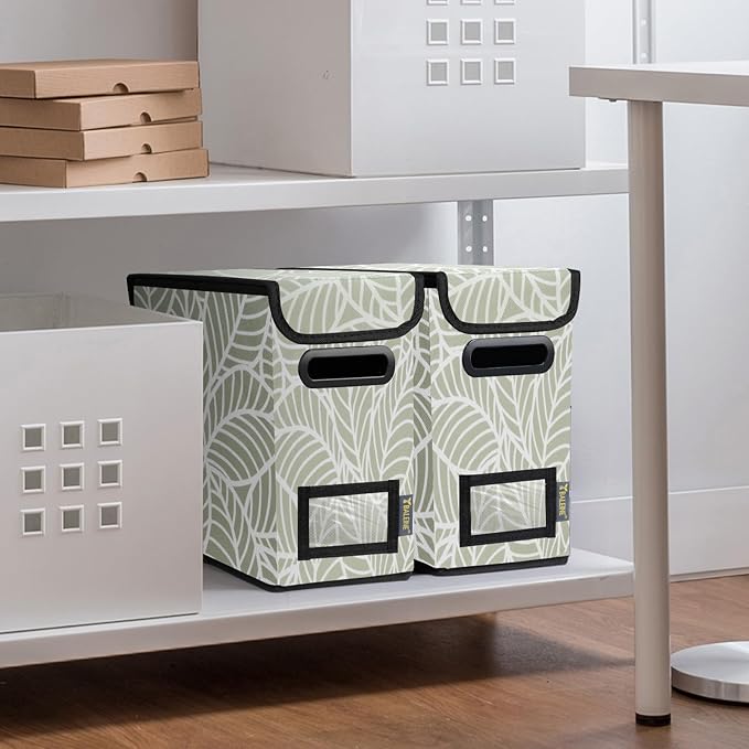 BALEINE File Organizer Box with Lid, Collapsible File Folder Organizer with Plastic Slide, Hanging File Folder Box for Office Document Storage (2 Pack, Antique Foliage, S)