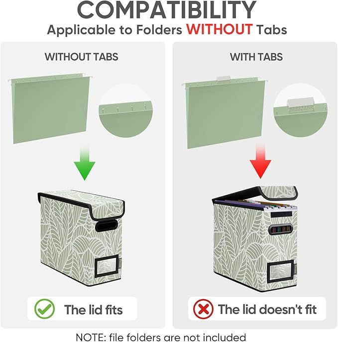 - [UNIVERSAL SIZE] Our file box with lid fits letter-sized files. It is designed for efficiency and functionality, with its smooth PVC slide rails on both sides, you can effortlessly slide file folders for easy access and neatly arranged. The lid fits snugly on the box after hanging folders. (NOTE: file folders are not included)