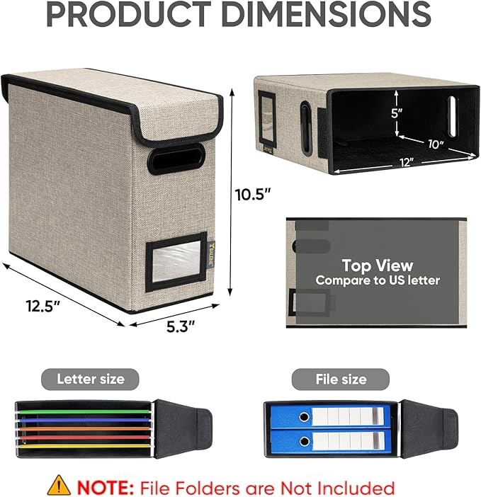 - [MULTI-PURPOSE USAGE] Measuring 5.3x12.5x10.5 inches, our file folder box is perfect for organizing files, bills, and papers in your home or office. Its versatility makes it practical for various needs
