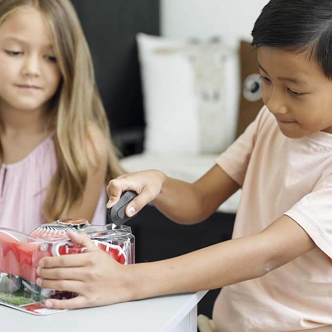 - CUT PACKAGING, NOT YOUR FINGERS: This small box opener's blade is made of 100% zirconium oxide and safeguards against injury with its proprietary finger-friendly edge; keeping both the user and the contents inside the package safe.
