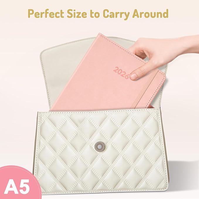 - Portable and Easy to Carry: A5 (5.8" x 8.3") and pocket size (3.5" x 6"). This small calendar book is perfect for slipping into your backpack or ladies' purse. It's lightweight and easy to carry. Whether you are a teacher, student, or office worker, the 2026 planner allows you to jot down ideas, plans, or creative thoughts anytime, anywhere