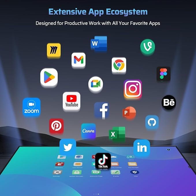 - Robust Open APP Ecosystem: The electronic whiteboard enabling seamless integration of a wide range of educational, productivity, and entertainment apps. Whether for work, education, or collaboration, you can easily download. Equipped with a 4K UHD touchscreen to handle everything from high-definition presentations to video calls.