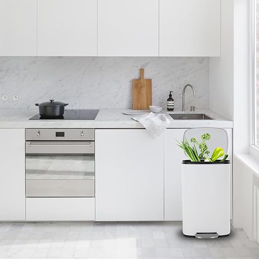 PayLessHere Stainless Steel Trash Can with Lid - Removable Inner Bucket, Foot Pedal Soft Close for Office, Home, Kitchen (White, 13 G)