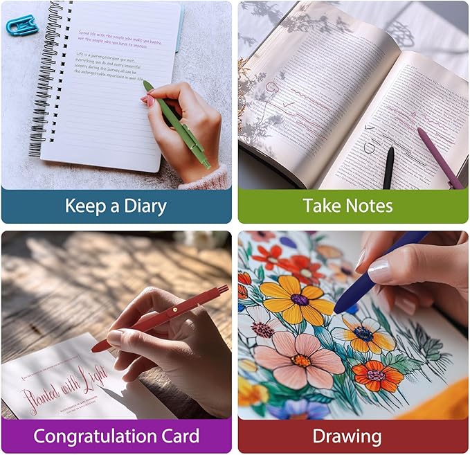 - Quick-Drying Ink Pens: The colored gel pens dry quickly, reducing the risk of smudging and making them ideal for both left-handed and right-handed users. The comfortable grip ensures a steady hand during extended writing sessions, while the durable, fine-tipped design allows for precise lines and detailed work
