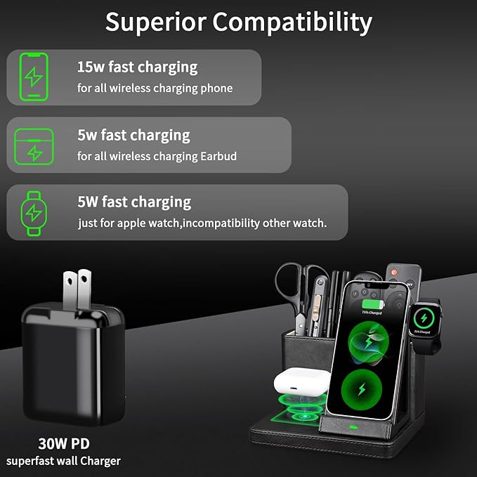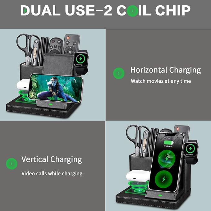 - 3-in-1 Wireless Charging Hub: Simultaneously charges your phone, earbuds, and smartwatch with fast wireless technology, keeping your workspace free of cable clutter.