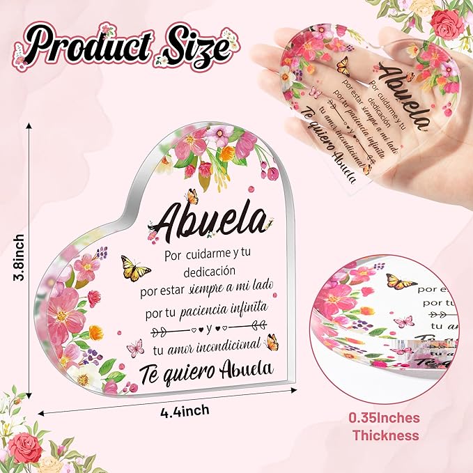 Yopyame Acrylic Gifts for Grandma - Spanish Heart Acrylic Plaque for Grandma from Granddaughter Grandson - Birthday, Christmas, Thanksgiving Sign