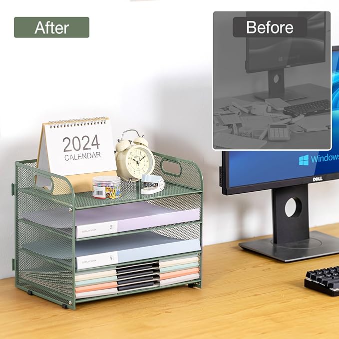 - 【4-Tier Partitioned Storage】With four tiers, this desk organizer provides ample storage space for all your A4/letter-sized documents, file holders, and other office supplies. Multiple tier with stackable trays allow for easy categorization and separation of items, maximize your work efficiency while keeping your desk tidy