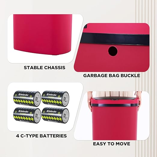 - ✨ Power Saving: This trash can Equipped with a motion sensor,it can operates efficiently with just 4 AA batteries, allowing for long-term usage without frequent replacements.You don't need to worry about specialized of hard to find battery types.
