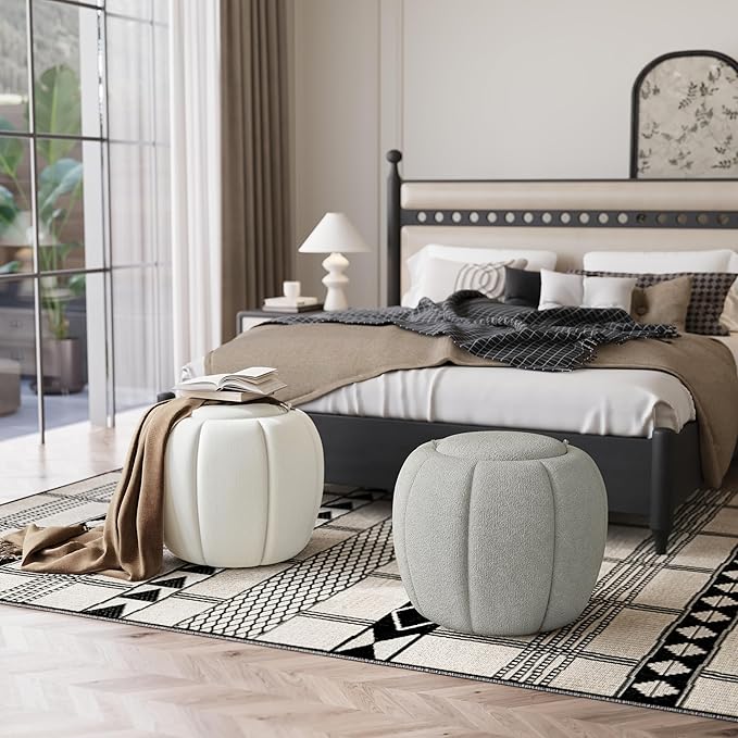 - 【Chic Design】 This Ottoman stool has a uniquely beautiful appearance, somewhat resembling a pumpkin. It also serves as a lovely decorative piece that makes your room more beautiful and unique. This makeup stool is made of a soft and comfortable material. Whether used as a footrest or a vanity stool, this stool provides maximum comfort.