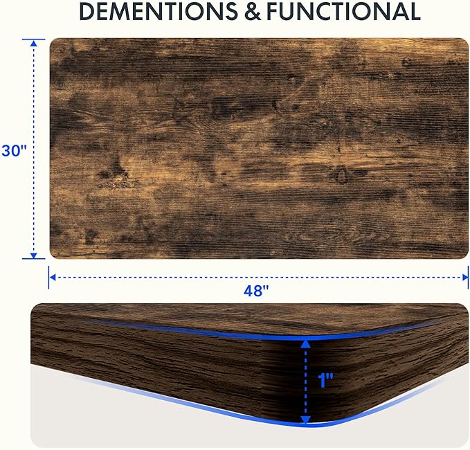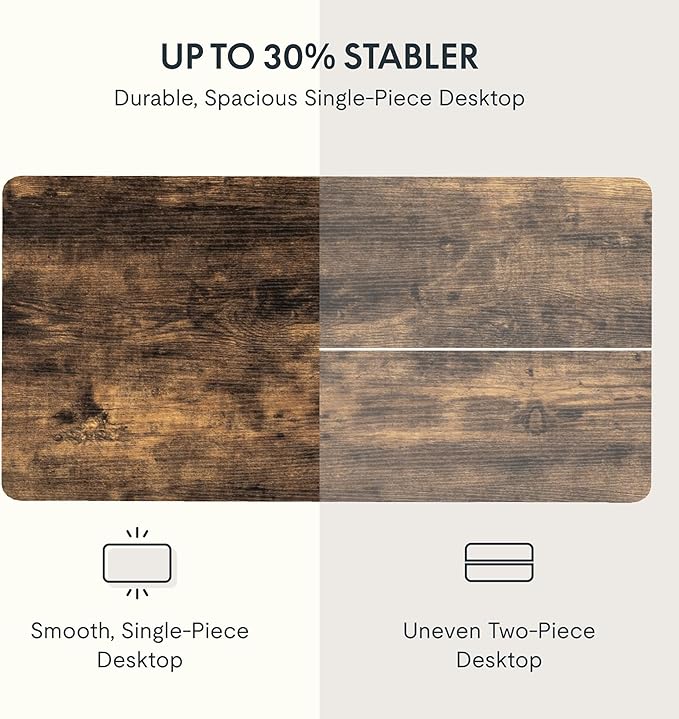 - AMPLE WHOLE-PIECE DESKTOP: With its whole-piece 1β eco-friendly desktop, this standing desk provides plenty of room for your computer setup, documents, and accessories, creating a well-organized and productive work environment. Due to hand measurements, desktop dimensions may vary slightly by 0 to 1β.
