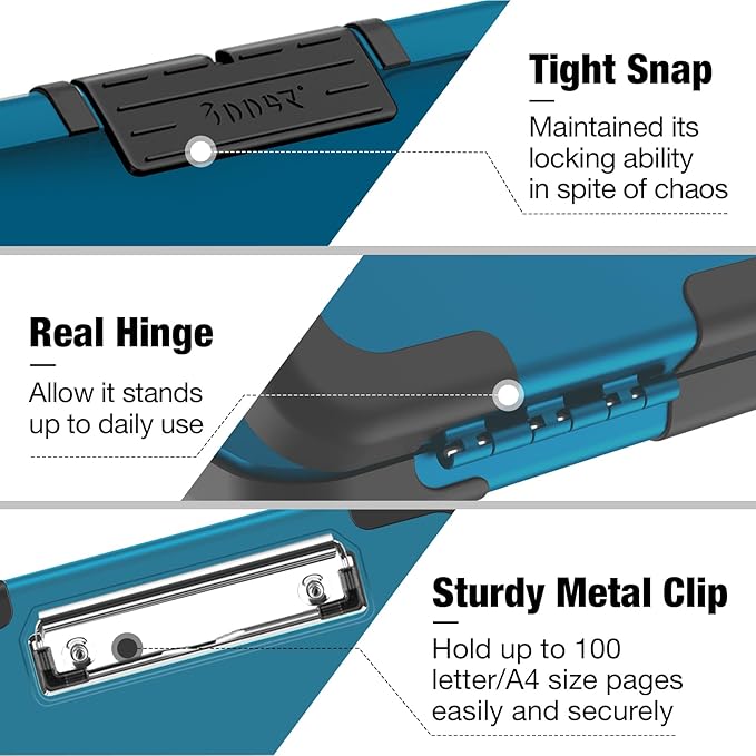 - Unrivaled Durability & Ultimate Protection: Reinforced with rubber corner bumpers and crafted from high-strength plastic, this clipboard is built to endure the toughest environments, preventing accidental drops and impacts. With a real hinge and tight snap closure, it ensures unparalleled durability.