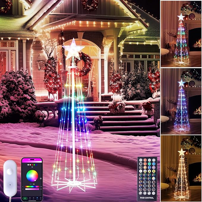 Smart Christmas Tree Lights, 4Ft 110 LEDs Outdoor Christmas Cone Tree Lights Music Sync with APP Control, DIY 16 Million Colors Changing Prelit Artificial Tree Lights for Indoor Christmas Decoration