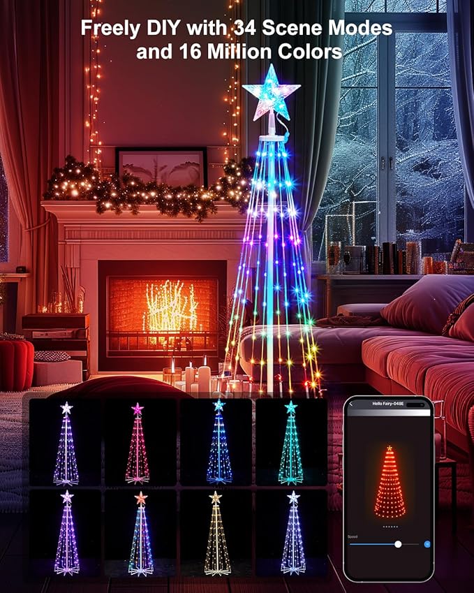 - Independent Topper Control: Use App or remote to turn on or off the LED lighted star topper, or change it to warm white or synchronize with the current lighting effect of this color changing Christmas tree