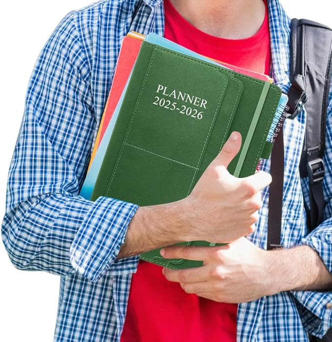 Planner 2025-2026 - 18 Months Academic Planner 5.8" x 8.5", 2025-2026 Weekly & Monthly Agenda with Pen Holder, Vegan Leather Hard Cover, Green