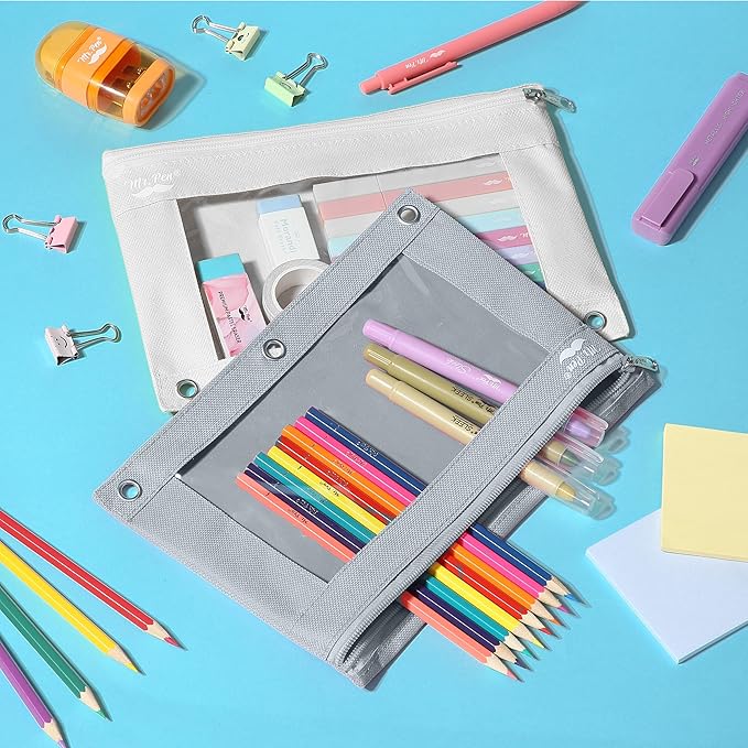 - Mr. Pen pencil pouch for 3 ring binder comes in a 2-pack set featuring stylish grey and beige colors, ideal for keeping your school or office supplies organized.