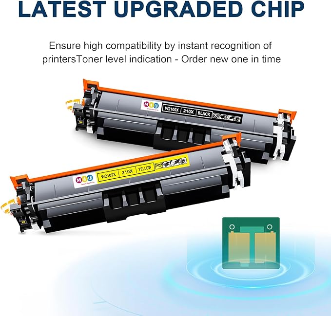 - Latest Chip: 210X toner cartridges equiped with latest chip which can be recognized by the printer instantly, to insure perfect compatibility and it can display toner level to remind a new replacement in time