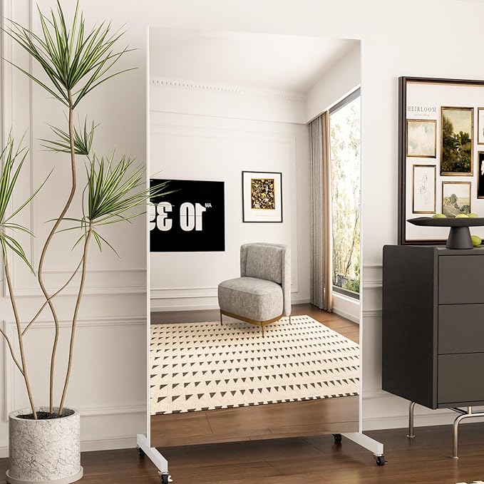 - Effortless Mobility for Versatile Use: Equipped with high-quality wheels, this rolling mirror moves easily, perfect for home gyms, dance studios, and yoga rooms.
