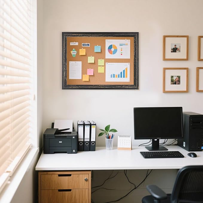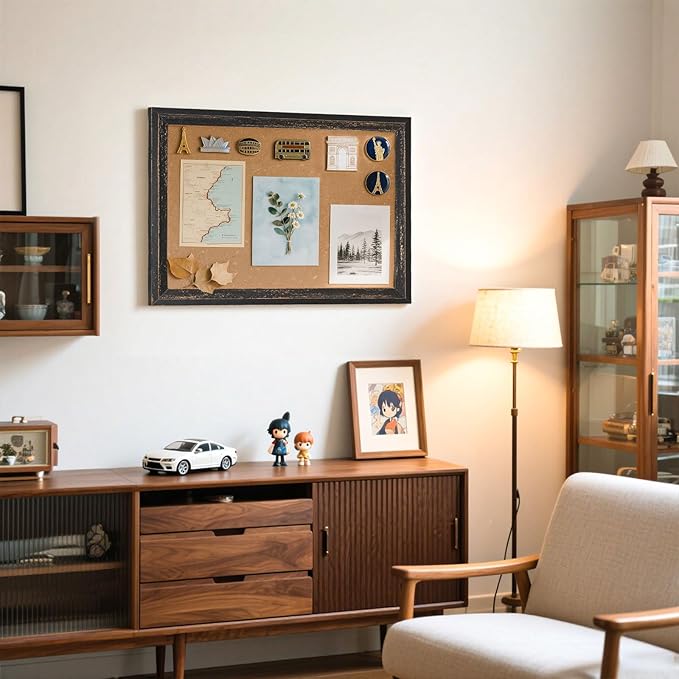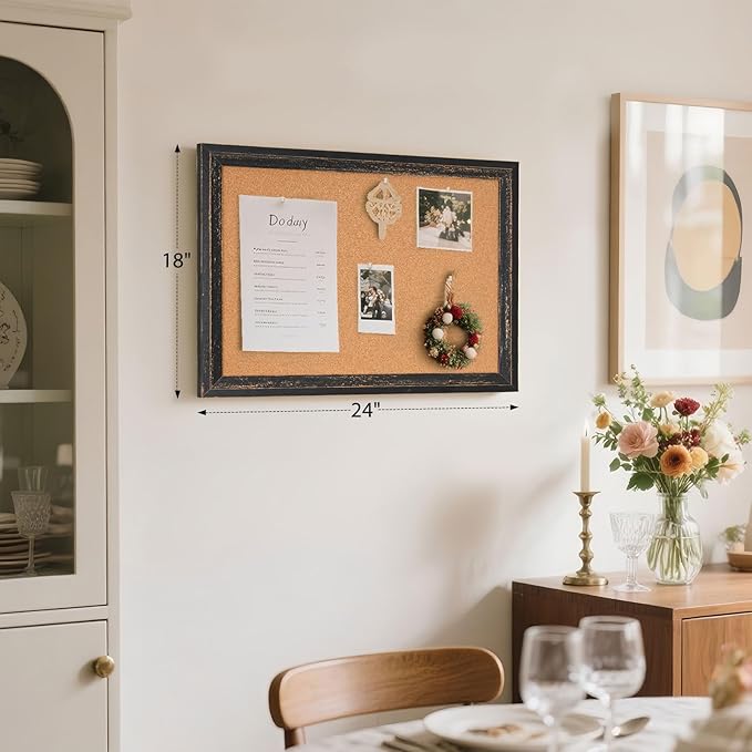 Cork Board Bulletin Board - 24" x 18" - Rustic Black Frame Corkboard for Wall - Decorative Pin Board, Message Board, Vision Board, Picture Board, Photo Board