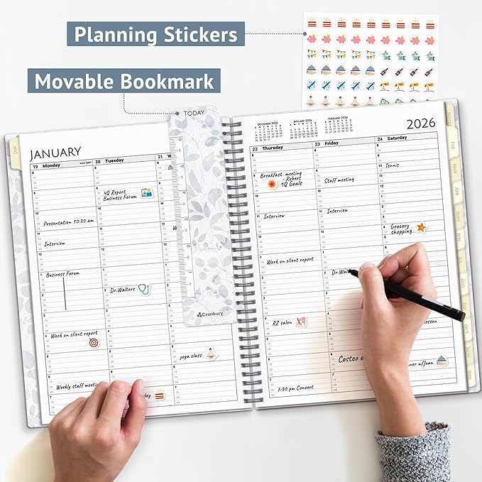 - COMPLETE TIME MANAGEMENT: Quick-access to reinforced colorful monthly tabs, durable poly movable bookmark for quick navigation, yearly overview & important dates section for efficient daily planning.