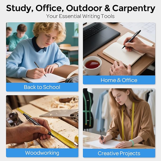 - Enhanced Build-All Weather Mechanical Pencil: Made of premium materials, the drawing pencils body is waterproof and all-weather resistant. Reinforced structure survives accidental drops. Rust-proof, drop-proof, suitable for extreme scenarios like construction sites, outdoors, workshops. It means this is not just a pencil set, it's about having a professional-grade creative companion that adapts to your environment, so your creativity never has to hit pause