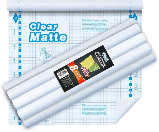 Chell 8 Pack Matte Clear Contact Paper Roll for Books, Crafts and Countertops, Self Adhesive Book Cover, 17.5 in x 5 ft