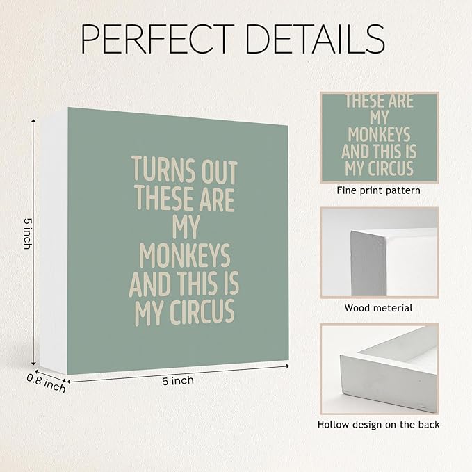 Funny Cyan Office Home Desk Table Decor Wood Sign - Turns Out These Are My Monkeys And This Is My Circus, Fun Desk Accessories for Work, Office Decorations for Work Women, Boss Gift, 5x5 Inch
