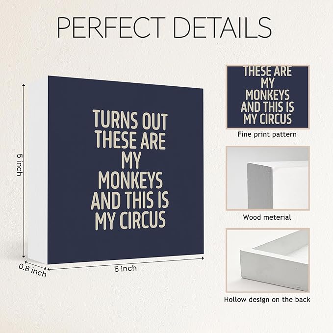 Funny Blue Office Home Desk Table Decor Wood Sign - Turns Out These Are My Monkeys And This Is My Circus, Fun Desk Accessories for Work, Office Decorations for Work Women, Boss Gift, 5x5 Inch