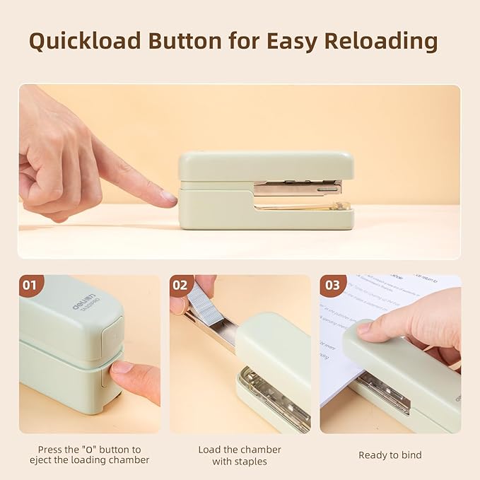 - More Staples Storage Space -Built-in staples storage compartment, holding up to 80 staples.