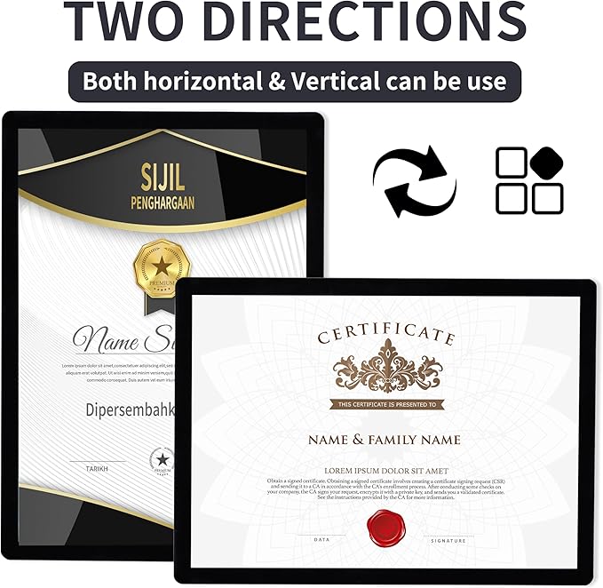 - Convenient: This 8.5x11 display frame makes it easy to switch between Horizontal and Vertical display, and content replacement is convenient, allowing flexible display updates according to different needs and occasions