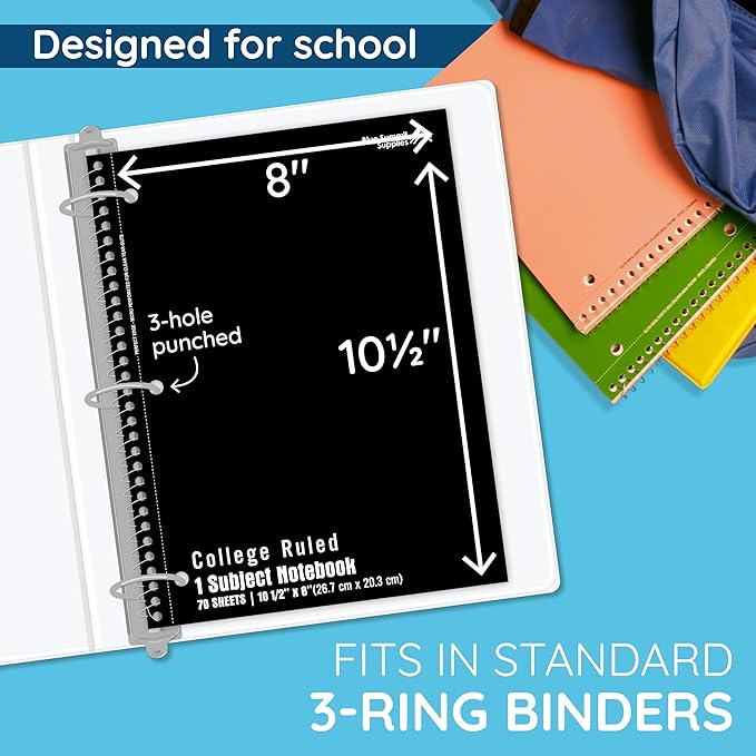- Clean and Consistent Writing Surface – Each 1 subject spiral notebook college ruled includes 70 pages of smooth, lined paper—ideal for writing notebooks, schoolwork, or journaling with minimal bleed-through.
