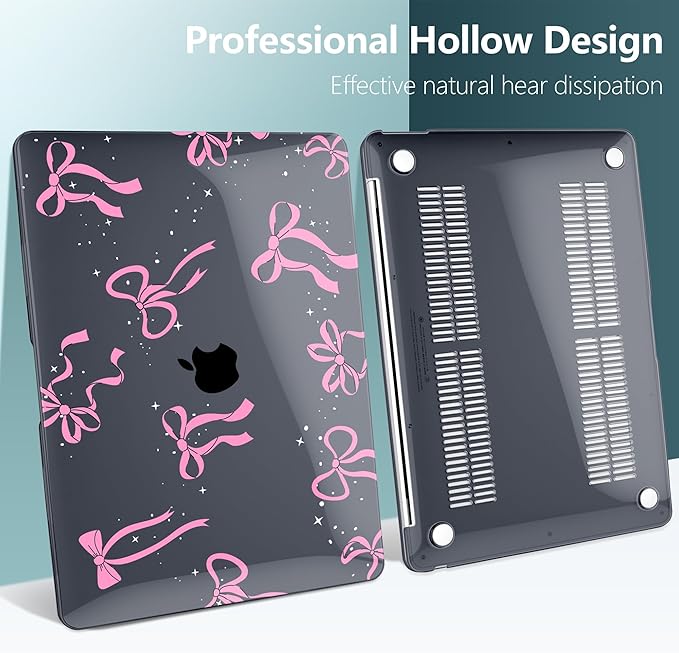 DONGKE Compatible with MacBook Air 13 inch Case 2021 2020 2019 2018 Release A2337 M1 A2179 A1932 with Retina Display & Touch ID, Plastic Hard Shell & Keyboard Cover - Bows & Star