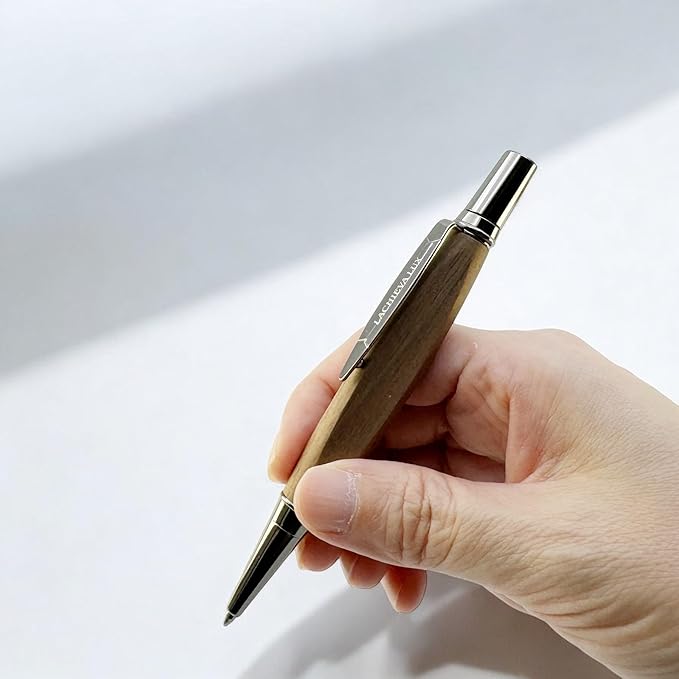 LACHIEVA LUX Walnut Wood Ballpoint Pen and Mechanical Pencil Set – Triangle Grip, Luxury Gift for Men and Women, Includes Refills and Gift Box