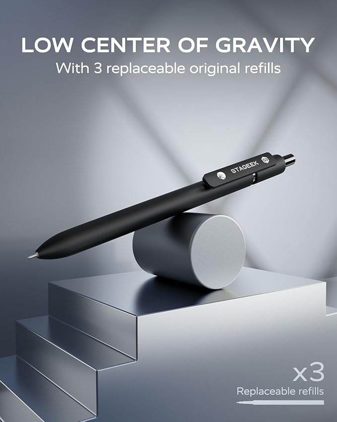 - 12PCS Ink Pens & 3 Refills: You will receive 12 sleek black ink pens with a unique minimalist style that highlights the purity of a single color. Combining traditional ink reliability with gel pens smoothness, they include 3 original refills and offer exceptional value for extended writing needs—perfect for daily use and replacements