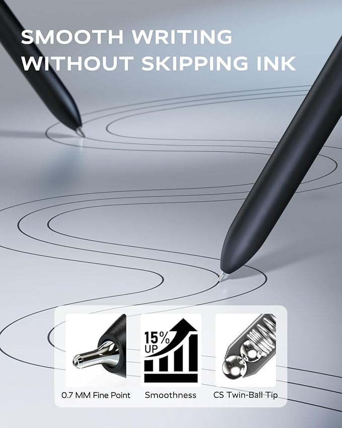 - Rolling Ball Design: These 0.7mm fine point pens feature little steel ball clip that firmly attaches to books, notebooks, bags, or pockets, making them easy to carry and preventing loss. The design also effectively reduces scratches on paper