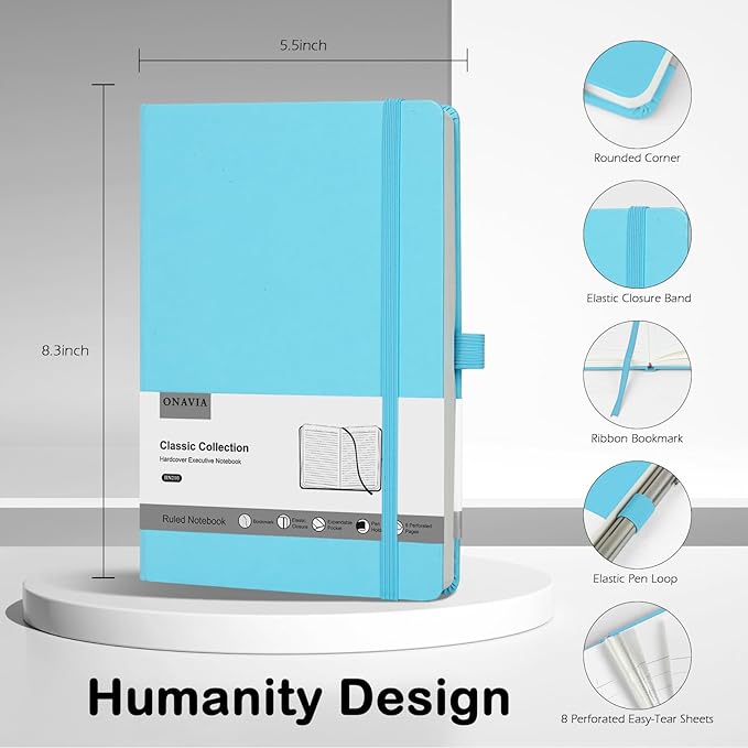 - 【Hardcover Notebook Journal】ONAVIA 5.5×8.3 inches standard lines notebook features a sturdy and durable hardcover, 80sheets, 160 pages, perfect as gift