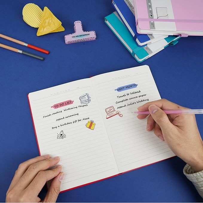 - 【180°Lay Flat Design For Writing Ease】ONAVIA A5 college ruled note book is designed to lay flat 180°, making it easier and more comfortable to write, take notes and sketch