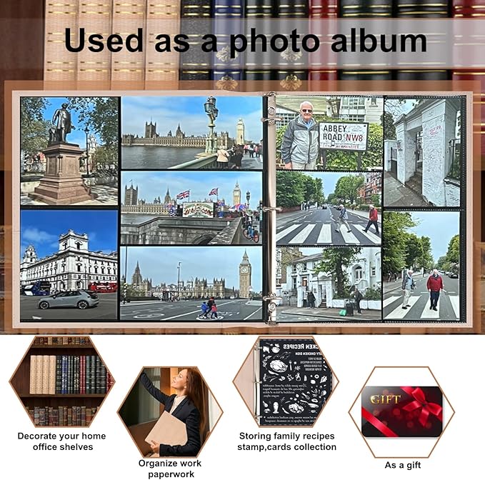 - 📕Premium PU Leather Cover - The leather binder 3 ring adds an extra layer of protection to your papers. The 3 ring binder 1 inch is perfect for professionals, students, or anyone who appreciates quality craftsmanship and classic design. This 1 inch binder can hold lots of papers, storing family recipes, kids' artworks, or coupons. The D ring binder 1 inch is great for a home library, as a photo album, for genealogy, family recipes, legal documents, stamps, or postcard collection