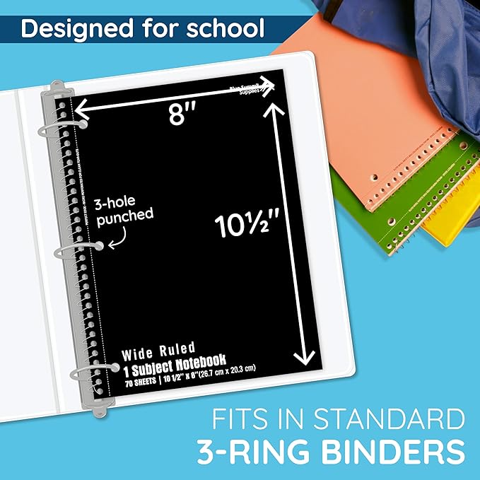 - Standard Size with Binder-Friendly Design – Each 10.5” x 8” 1 subject notebook is 3 hole punched, making it easy to insert into binders or folders for school, home, or office use.