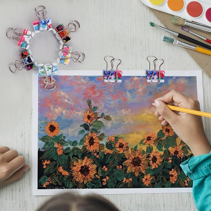 Ufmarine 60 Pcs Small Binder Clips3/4 Inch, Floral Cute Binder Clips, Small Paper Clips for Office, Standard Size