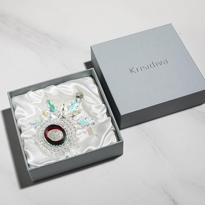 - The product includes: (1) Krisidiva 2024 snowflake jewelry, 2024 version, silver/transparent/color crystal, engraved with labels, gifts for four seasons, size: 4.41 * 3.54 inches, box with Krisidiva logo, ribbon (2), crystal chain (1)