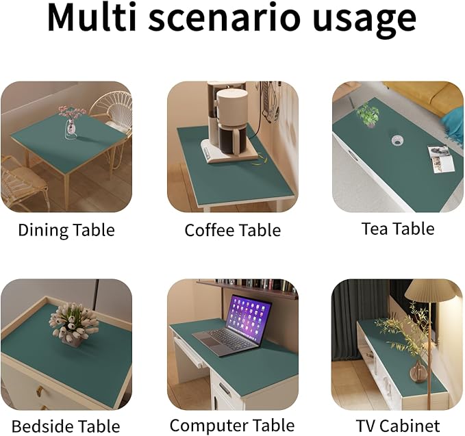 - Safe Material:The Table Cover is made of faux leather(Non genuine leather)material,Non toxic odorless.The opacity of the product can effectively conceal flaws on the surface of furniture and tabletops.The product has a thickness of 1.8mm, with a soft and durable texture that can effectively cushion the collision between tableware and tabletop.it shields furniture from scratches, scuffs, stains, spills, and damage.