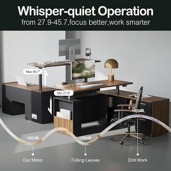 - Powerful Storage System:This lifting executive desk contains a 3-drawer cabinet part, and there is also storage space in its lifting column part where you can place office necessities or decorative items