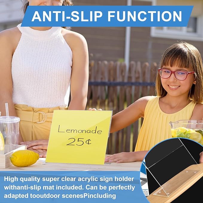 - Easy to Use: Insert 4 anti-slip pads into the base, Each of our Acrylic Sign Holder comes with a peel off film guide, follow the red arrows to peel off the film in seconds, and the plastic sign holder has an opening on its side for easy paper insertion